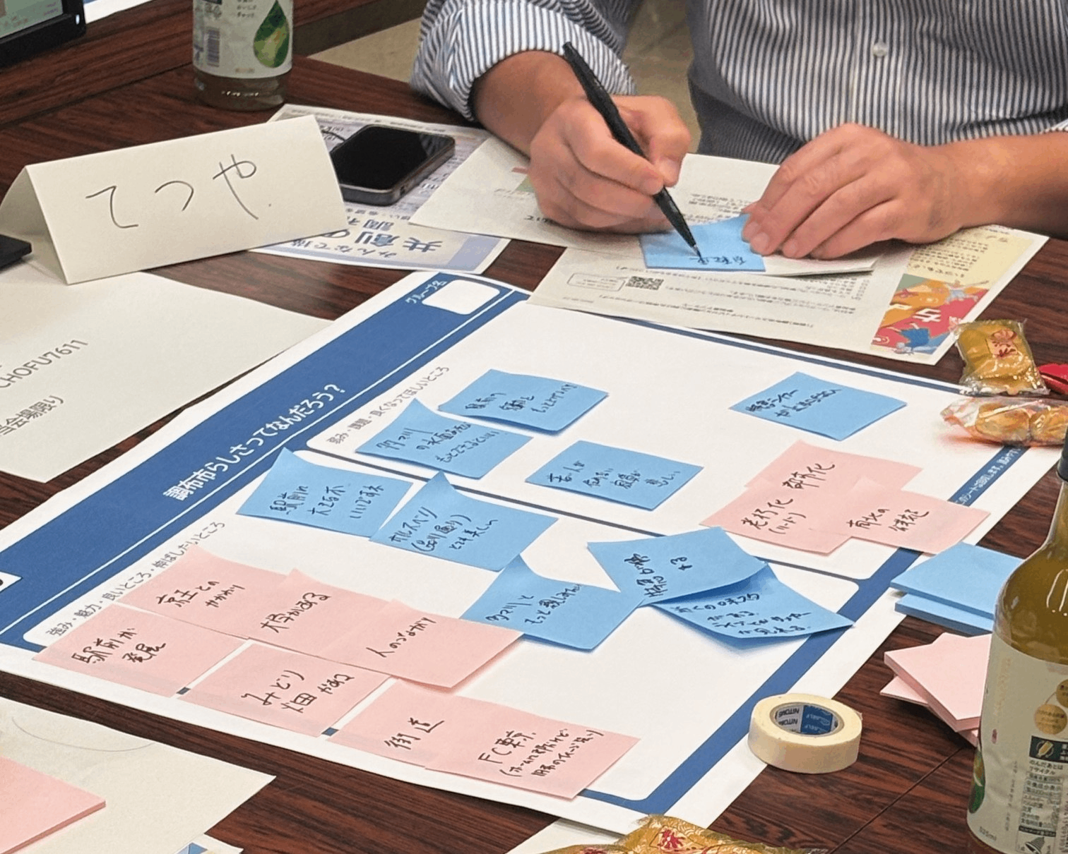 ここからは、ちょうふLiqlidでアイデア募集している設問について、対面型のワークショップで参加者の意見を集めます!