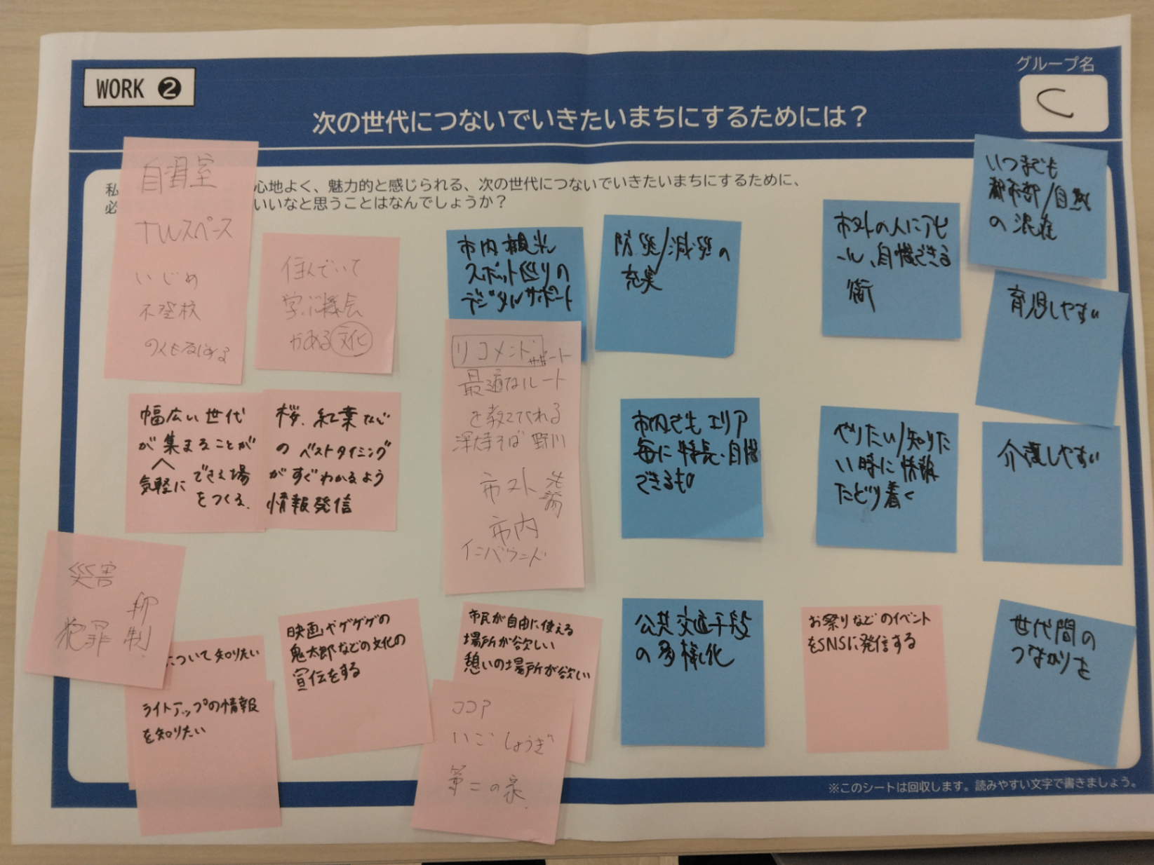 参加者それぞれのまちへの思いや期待がこもった付箋がどんどん貼られていきました!